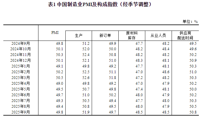 澳门·威尼斯人2025年9月中国采购经理指|三国敢达|数运行情况